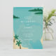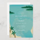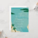 Hand painted palm trees, beach and ocean make up a tropical background for this destination wedding design.