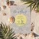 Modern, elegant, summer destination beach wedding invitation with ocean, tropical palm trees illustration and simple calligraphy script.
