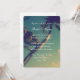 Tropical beach destination wedding reception party invitations. Vintage retro look palm tree stock photo image with stylish script typography template. Elegant design for bride and groom getting married in the Caribbean or other exotic warm climate location. Customisable text and paper quality. Modern rounded corners or trendy travel luggage tag ticket cutout shape. Beautiful ocean scene with curved waving palm tree and blue sky. The perfect dream setting for marriage near the sea.