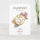 Modern and Colourful Floral Invitation Wedding Destination, like passport. Compass monogram crest on the front page, with tropical flowers. Perfect design for your summer beach wedding. Add the QR code of your wedding website