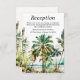 This elegant and beautiful watercolor wedding reception enclosure card features a beach and palm trees. The text combines handwritten script and sans serif fonts for a stylish and modern look. This is perfect for a summer beach or tropical destination wedding.