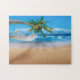 This game puzzle is shown with a photo print of a beautiful tropical beach scene.
