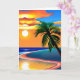 Happy Birthday Card. AI generated palm tree, ocean and sunset, blue, purple, orange and yellow retro colours. generativecontent