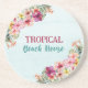 Tropical Beach House Pink Flowers Floral Botanical Coaster