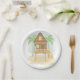 Tropical Beach Hut Surfboards and Palm Trees Paper Plate