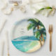 Tropical Beach Lagoon | Palm Tree Paradise Wedding Paper Plate