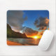 Mouse pad shown with a photo print of a beautiful tropical beach at sunset.