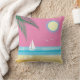 This fun cushion is decorated with a tropical beach scene accented with starfish, seagulls, a sailboat and palm leaves on a pink sky background, making it the perfect summertime accessory for the living room, bedroom, cottage, patio, deck or pool area.