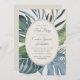 Invite your guests to paradise for a day with this elegant tropical palm leaves design. Featuring a spray of assorted tropical leaves in serene blues and greens and a stylised rattan pattern on the back, this design embodies a breezy day underneath the palm trees. Perfect for your casual beach affair or destination celebration in the tropics. Shop the collection today for matching stationery, and get away to the perfect day!