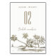 Tropical Beach Palm Tree Sketch Pale Gold Wedding Table Number