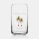 Tropical beverage can glass with a palm trees drawing design. With customisable lettering, you add your own family name and year. A great addition to your summer kitchen decor and entertaining.