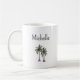 Tropical personalised coffee mug, with a simple palm trees design. Elegant Black script lettering can be customised with your own text. A beach inspired accessory for your favourite hot beverage.