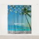 This fun and personalised tropical beach destination wedding tapestry can be used for a photo booth backdrop and features a tropical beach, turquoise blue ocean, boats, elegant palm trees, string lights, and your own names and wedding date in trendy classic and hand lettered script. This backdrop perfect for your tropical beach bridla shower, couple's shower, rehearsal dinner, or wedding reception party! Easy to customise with your own name and wedding date. Choose from several different colours of bean bag sets for each board. Please contact me with any additional design customisations you may need for your beautiful wedding. Photograph of beach and palm trees taken on the Big Island of Hawaii and design © by TK Goforth. For coordinating items, please visit my Tropical Beach and String Lights Wedding collection and my Zazzle store: