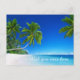 Postcard shown with a photo print of a beautiful tropical beach. Wish you were here...