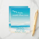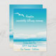 Teal blue Ocean and clear blue sky. Ocean waves crashing to the shore , seagulls flyng in the sky and a silhouette of palm trees - Fully Customisable Wedding invitations and matching extras.