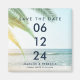 Tropical palm tree beach wedding save the date magnets for your destination beach wedding. Customise with your names and wedding date.