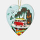A fun and modern illustration of a tropical beach scene with palm trees, oceans surf with surfers, a beautiful bikini clad woman, beautiful flowers and an old hippy van bus. Great design for the beach lover.
