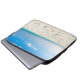 The sleeve is made of nice feeling material and seems very durable. I'm not sure how easy it'll be to clean, but the construction seems sound and the fabric is quick thick. I also like the double zipper. The printing is lovely and appears durable. The white on black contrast is nice, and the design very elegant.