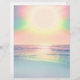 This Beautiful Tropical Beach Holographic Sunset seascape photo print brings to your home decor a sense of a calm, relaxed summer holiday. Featuring an amazing sunset with iridescent rainbow colours over the sea, pink and green ocean calm waves, shining light blue and lavender gradient beach sand, and a light rainbow-coloured glowing sun, projecting a blend of pink, teal, blue, aqua green, turquoise and yellow pastel colours horizon coast background.