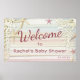Tropical Beach Seashell Modern Boho Baby Shower Chic Modern Poster Banner features a pretty beach themed design in pastel colours with seashells and the text "Welcome" in elegant pink calligraphy script typography. Perfect for baby shower party decor. Designed by Evco Studio www.zazzle.com/store/evcostudio