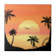 Tropical Beach Sunset Palm Tree Silhouette Art Ceramic Tile