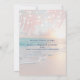A stunning chic pink pastel ocean side beach sunset with rose gold palm tree leaf and hazy sea mist gradient overlay on a summer beach theme birthday invitation. Wording can be changed to work for any age birthday or celebration, and there is space on the back for optional attire, directions, or parking information.