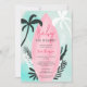 Tropical beach surfboard palm tree Baby Shower Invitation