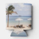 Two white umbrellas on sandy shore. Palms and beach whispers, paradise calls. Tranquil escape, dreams unfold.