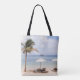 Tropical beach umbrellas: white, palm. tote bag