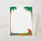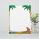 This vacation letterhead features a beach scene with palm trees on the side borders.
