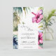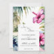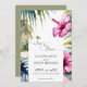 Tropical beach wedding save the date card, watercolor palms pink hibiscus for summer tropical destination wedding save the date card