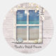 Tropical Beach Window White Wood Elegant Coastal Classic Round Sticker
