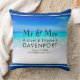 A commemorative wedding pillow with your names, ceremony location and wedding date. Designed with a sandy tropical beach. A gorgeous turquoise sea in the distance and crystal clear waters caressing a sandy beach. A bright blue sky in the background.