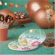 Bring summer fun to the party with these beach-themed paper plates designed by Destei. Light teal waves touch the sandy shore, framed by tropical palm leaves and a peek of sun on the top. On the sand, a yellow striped beach umbrella, pink swim ring and black sunglasses add playful summer touch. The center has space to write custom text, making every plate feel personal and festive for your celebration.