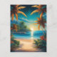 Tropical beach with palms postcard