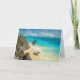 Tropical Beach with Wind Swept Palm Trees Birthday Card