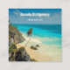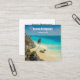 Tropical Beach with Wind Swept Palm Trees Square Business Card