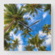 Tropical Beaches | Palm Trees on Blue Sky Square Wall Clock
