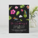 Tropical Black Pink Floral Greenery Beach Wedding Invitation