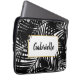 A bold and modern palm tree leaf pattern on a laptop sleeve perfect for the stylish and trendy beach lover and island vibe living that can be personalised with your name or any custom text. Your laptop will feel like it's on vacation!