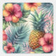 A lively and colorful tropical pattern featuring ripe pineapples nestled among lush teal palm leaves and vibrant hibiscus flowers in shades of red, pink, and orange. This design captures the essence of a tropical paradise, blending exotic flora with a fresh, summery vibe.