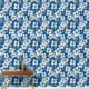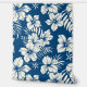 A tropical white floral print on a bright blue background