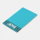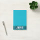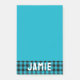 Turquoise sticky notepad personalised with your name in large white bold letters at the bottom of the notepad against a background of tropical blue buffalo check. Personalised notepad with a deep turquoise buffalo check detail, your name in large bold letters, and a strong shade of warm blue that will make your notes and reminders hard to miss!