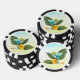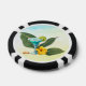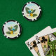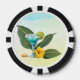 Poker chips with tropical design. A blue margarita drink, hibiscus flower, and big leaves are the design on chips with edge color options.