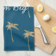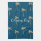 Tropical Blue Gold Glitter Palm Trees Tea Towel