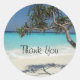 Thank you stickers with a beautiful and serene photograph. Turquoise tropical blue ocean waters, with a white sandy beach. A solo tropical tree provides a nice place to relax and enjoy this scenic idyllic spot.