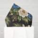 A striking, luxurious floral pattern set against a deep black background, featuring creamy ivory blossoms and rich sapphire-blue flowers nestled among sweeping palm fronds. Accented with elegant gold filigree details, this design evokes vintage glamour with a tropical, Art Deco–inspired flair.