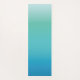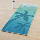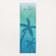 Destei's tropical theme yoga mat with blue palm tree silhouettes on an aqua blue background colour. There is also a personalizable text area for a name in a beautiful script font.