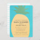 Tropical blue and yellow pineapple design baby shower party invitation printed in grey ink in a simple handwritten font. Reverse side of invitation is coordinating blue and white stripe design. Customise this invitation by changing the wording to fit your needs. To further customise, choose the customise it button -you will be able to change the font style, font size and ink colour. Contact me if you need assistance or are looking for a baby shower product in this design that you can't find in the store.