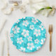 Tropical Blue White Hibiscus Flowers Pattern Paper Plate